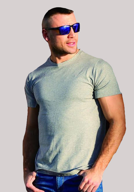 Camiseta de manga corta 100% algodón peinado 145 gr. Cuello redondo holgado de bies fino. Costuras laterales. Patrón corto y ajustado, manga ancha.